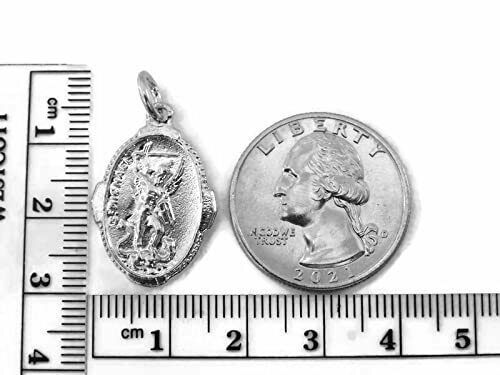 Welcome to Twins Jewelry Thank you for your interest in our item St. Michael .925 Sterling Silver Charm Pendant, this item has a high polish finish. The weight for the item is approximately 3.4 Grams, measurements are 29mm x 17mm. Our product is 100% made here in the USA with over 35 years in experience in the jewelry business. Our customers are our top priority with our 100% satisfaction guarantee or your money back policy. Thank you for your interest in our item, please judge by the picture and if you have any questions feel free to ask. Item#1006 Lot#25 Box#0