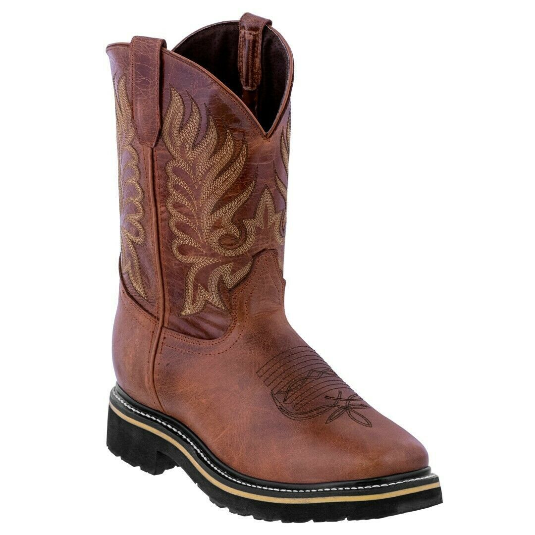 Mens Cognac Work Boots Real Leather Anti Slip Pull On Soft Toe Botas Trabajo