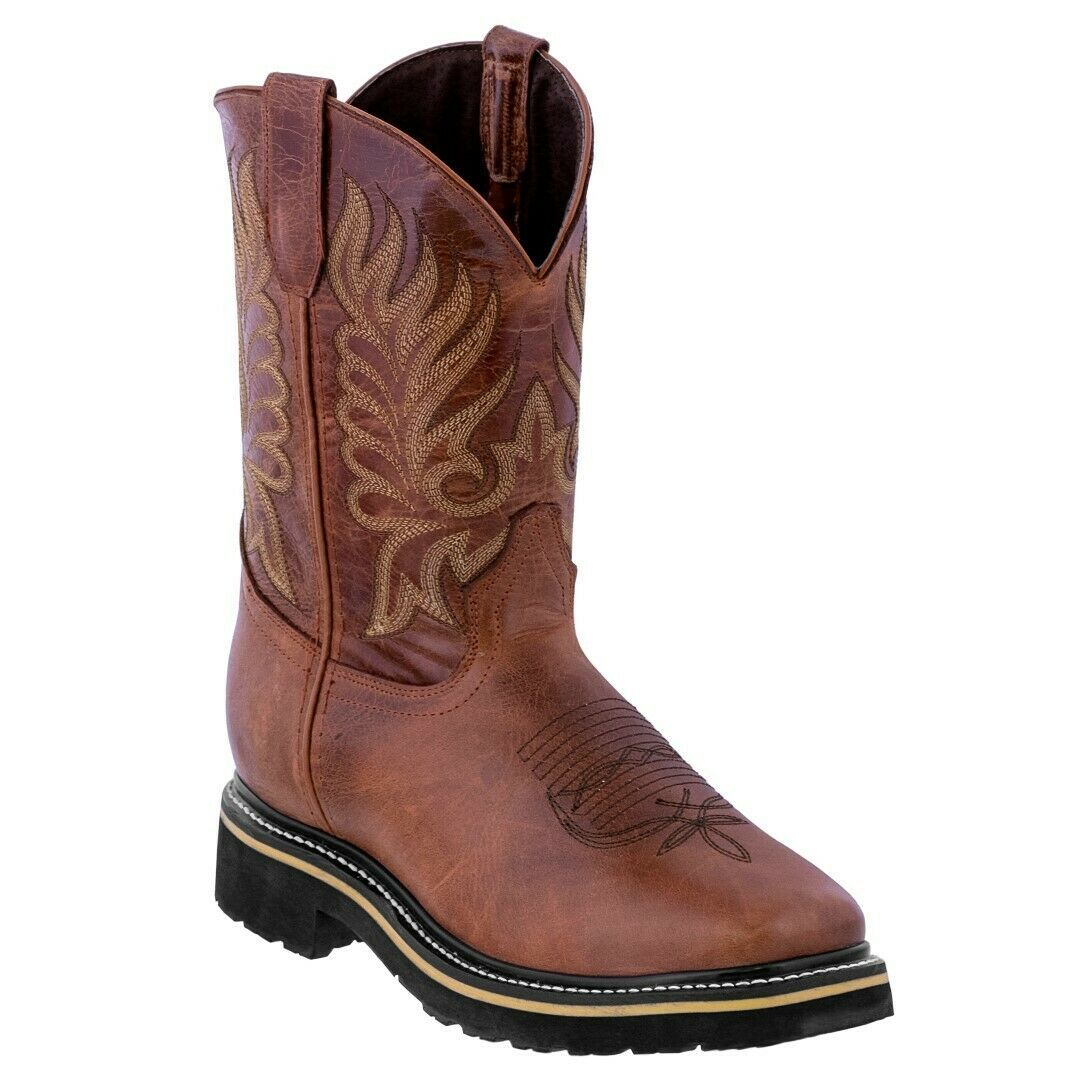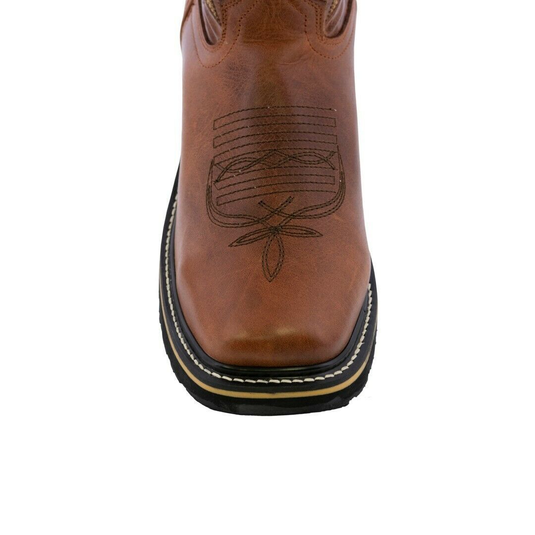 Mens Congac Work Boots Real Leather Anti Slip Pull On Steel Toe Botas Trabajo
