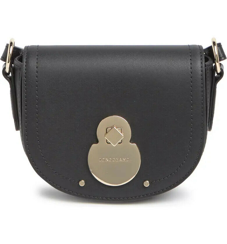Longchamp Extra Small Halfmoon Leather Crossbody Bag ~NEW~ Black