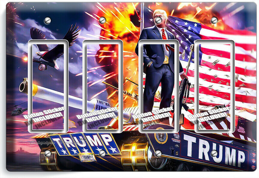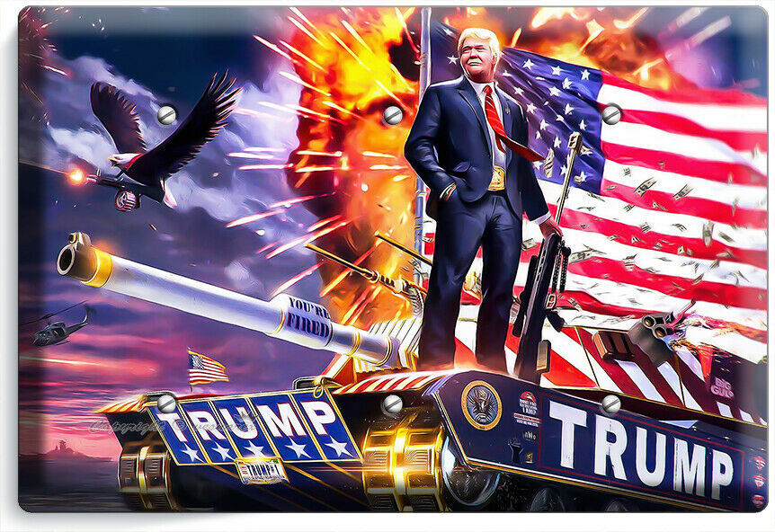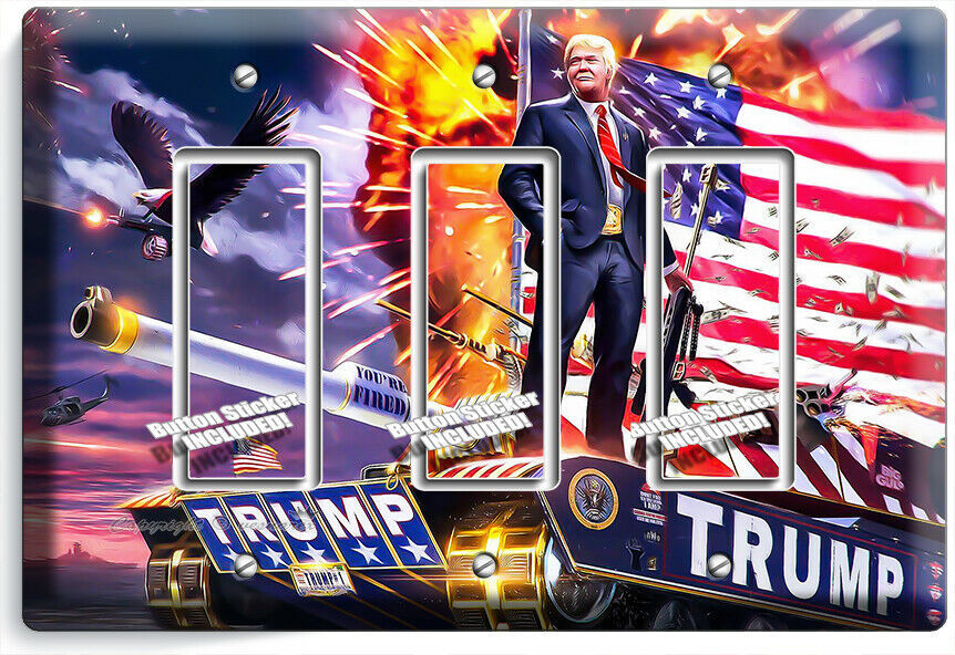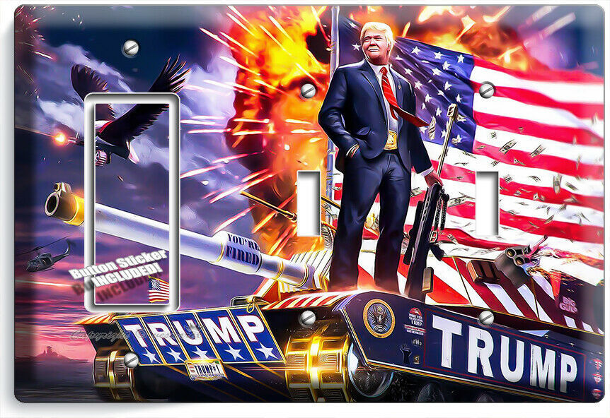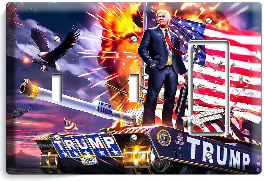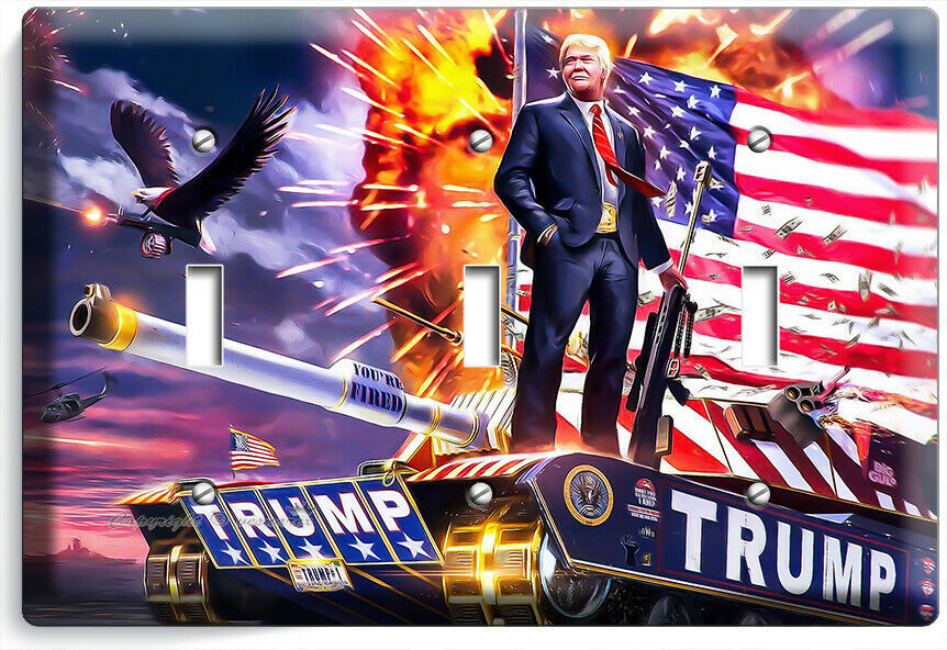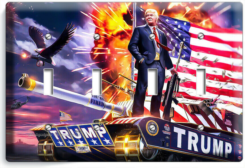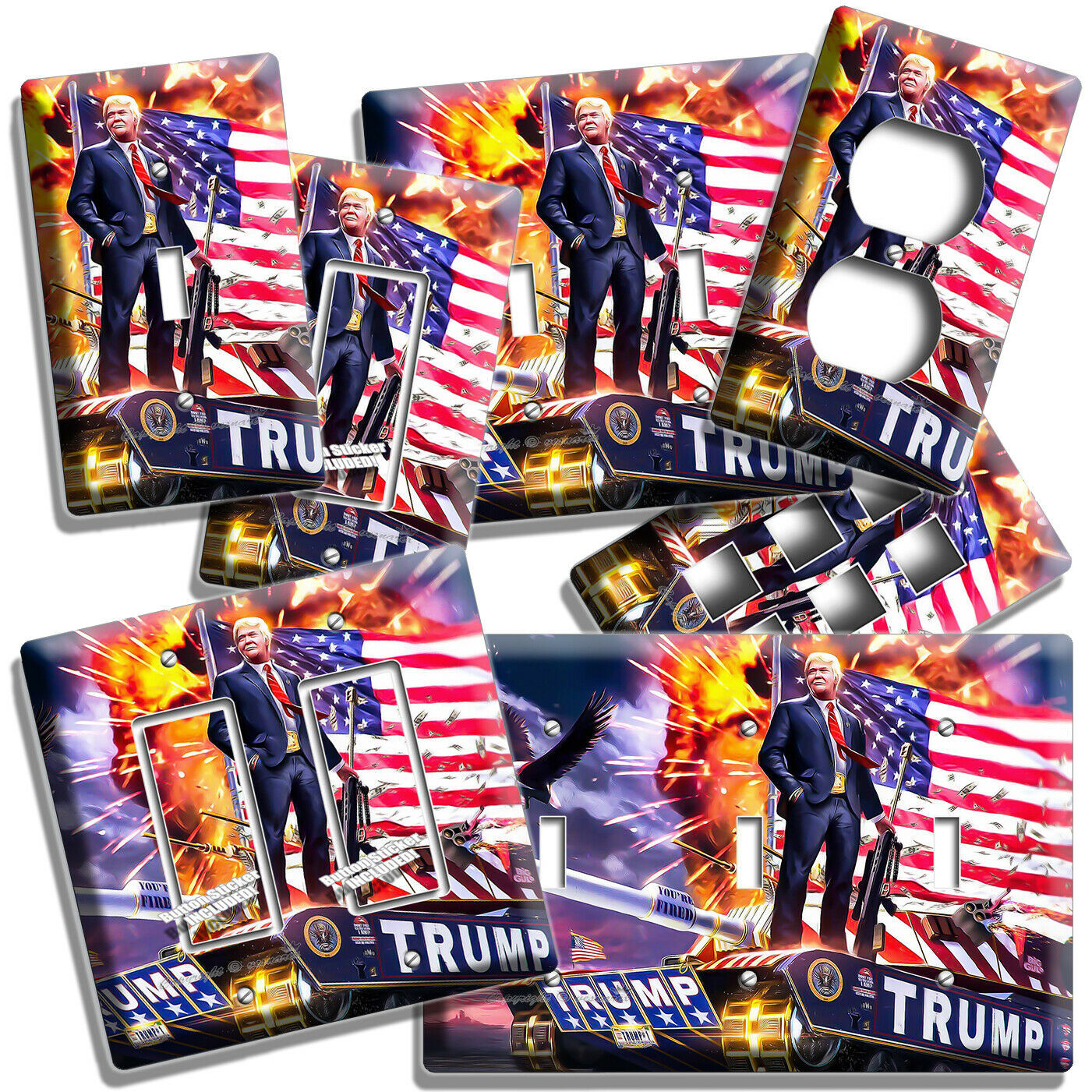 DONALD TRUMP AMERICAN FLAG TANK SUPERHERO LIGHT SWITCH OUTLET WALL ROOM HD DECOR