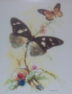 SIGNED VINCENTE B. BALLESTAR BUTTERLY WATERCOLOR ART