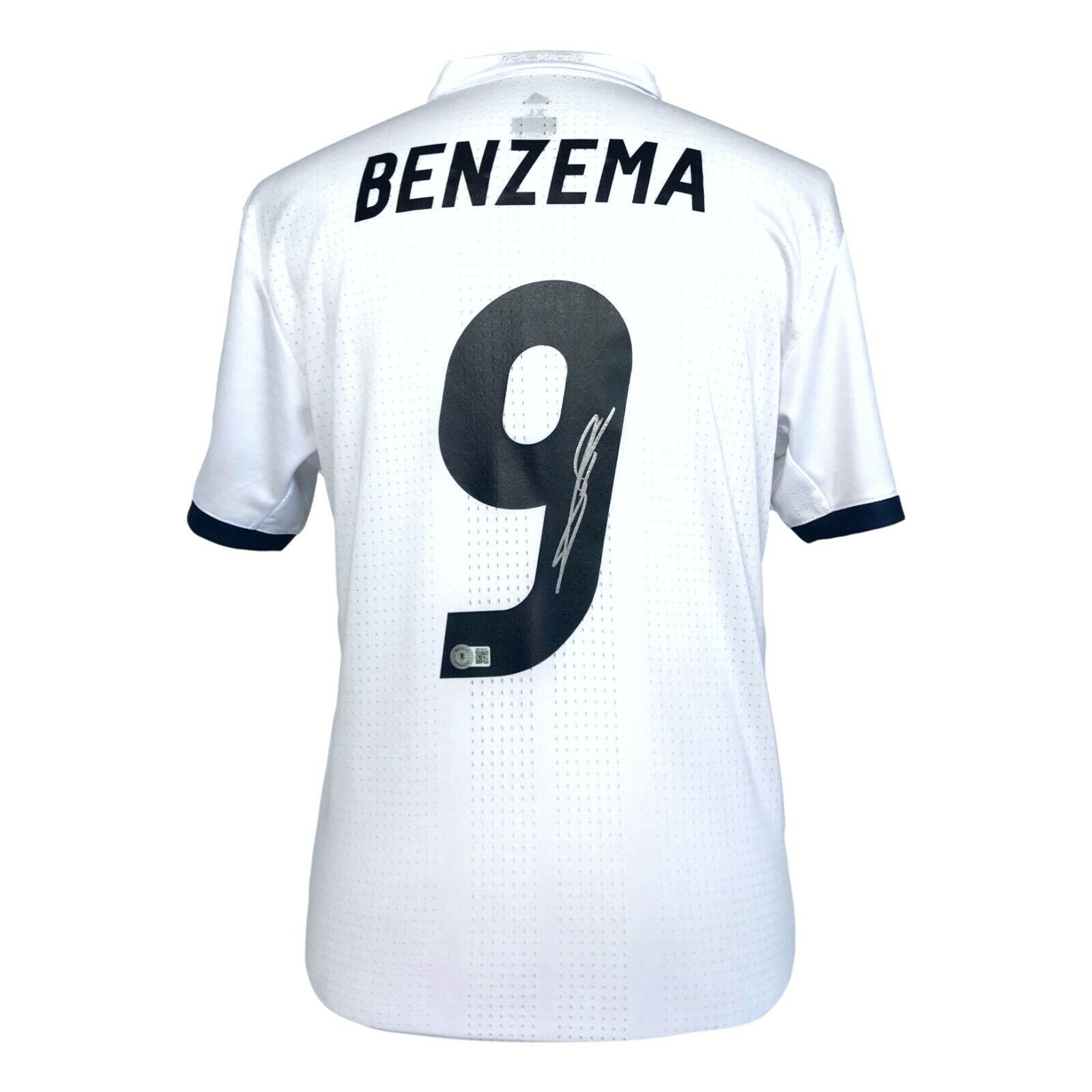 Soccer fans, this item is your calling! Check out this White Real Madrid Jersey that features the authentic autograph of Karim Benzema!! This size X Large adult mens jersey is brand new!! This is a must-have for all Karim Benzema fans' man caves, offices amp; game rooms! This autograph is certified authentic by Beckett Authentication Services (BAS), one of the largest amp; most reputable authenticators in the industry. This piece includes the BAS tamper-proof authentication sticker and identification card directly from them, which can also be accessed anytime/anywhere on their online database on their website. Note: This is a stock item where we are showing you a generic image of the item mentioned, although it may or may not be the exact one you will receive. The autograph quality may vary from the photo pictured, as well as the location of the autograph.