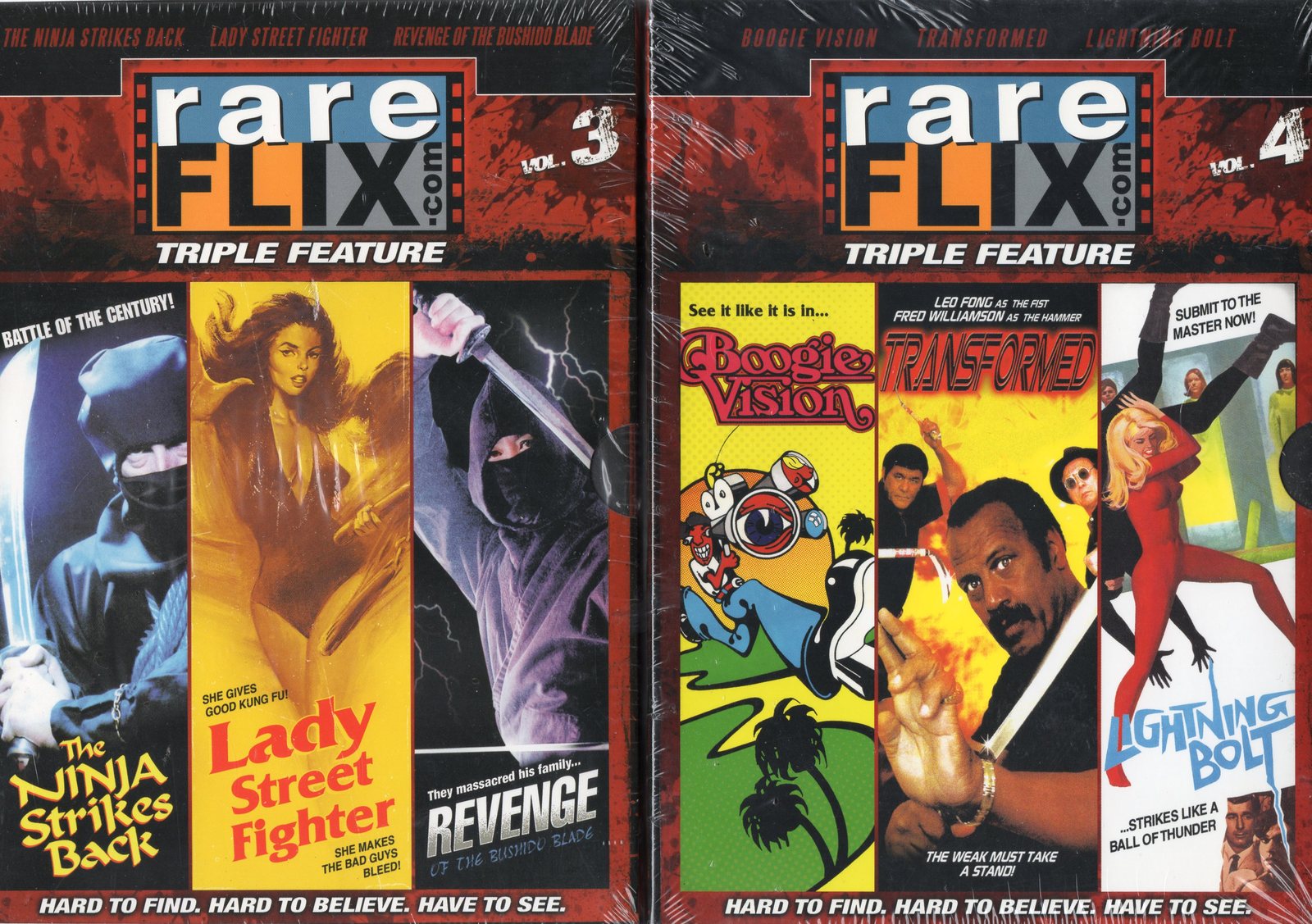 The first four volumes in the RARE FLIX collections. Each has 3 seperate dvd cases tucked in an oversized display cardstock slipcover. All of these sets are Out Of Print and no longer being manufactured. All are brand new factory sealed in shrinkwrap.