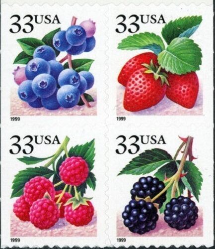 1999 33c Fruit Berries, Block of 4 Scott and similar items