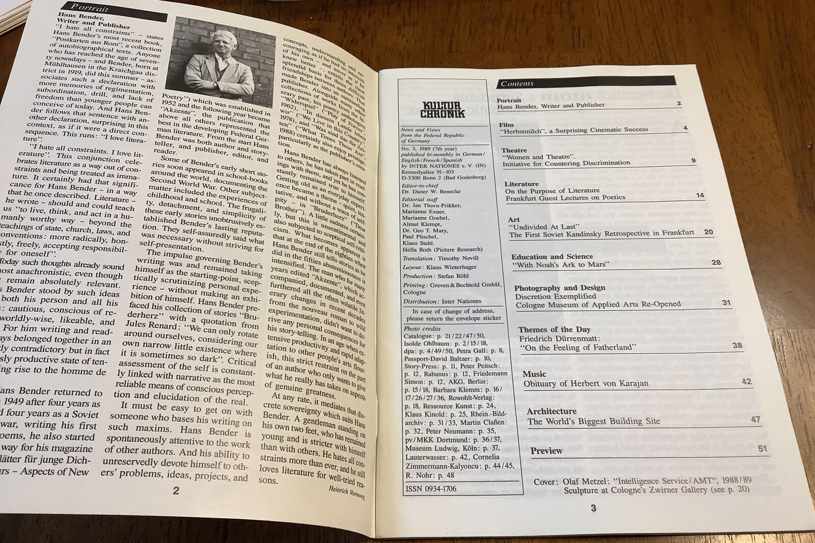 Kultur Chronik 5/1989 English Edition. Ex-lib in good condition. News and views from the Federal Republic of Germany. Feel free to email with questions. I do combine shipping on multiple purchases. Have a great day!