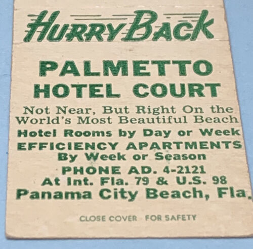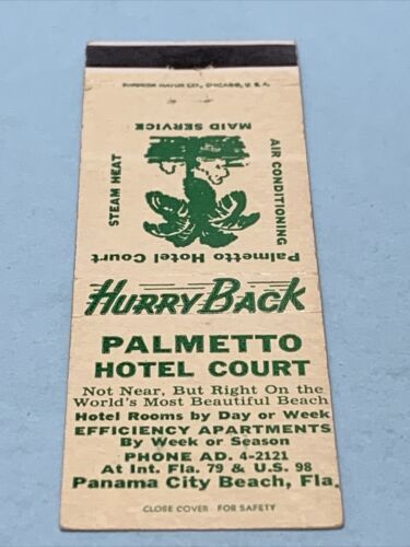 Front Strike Matchbook Cover Palmetto Hotel Court Panama City Beach, Fla gmg