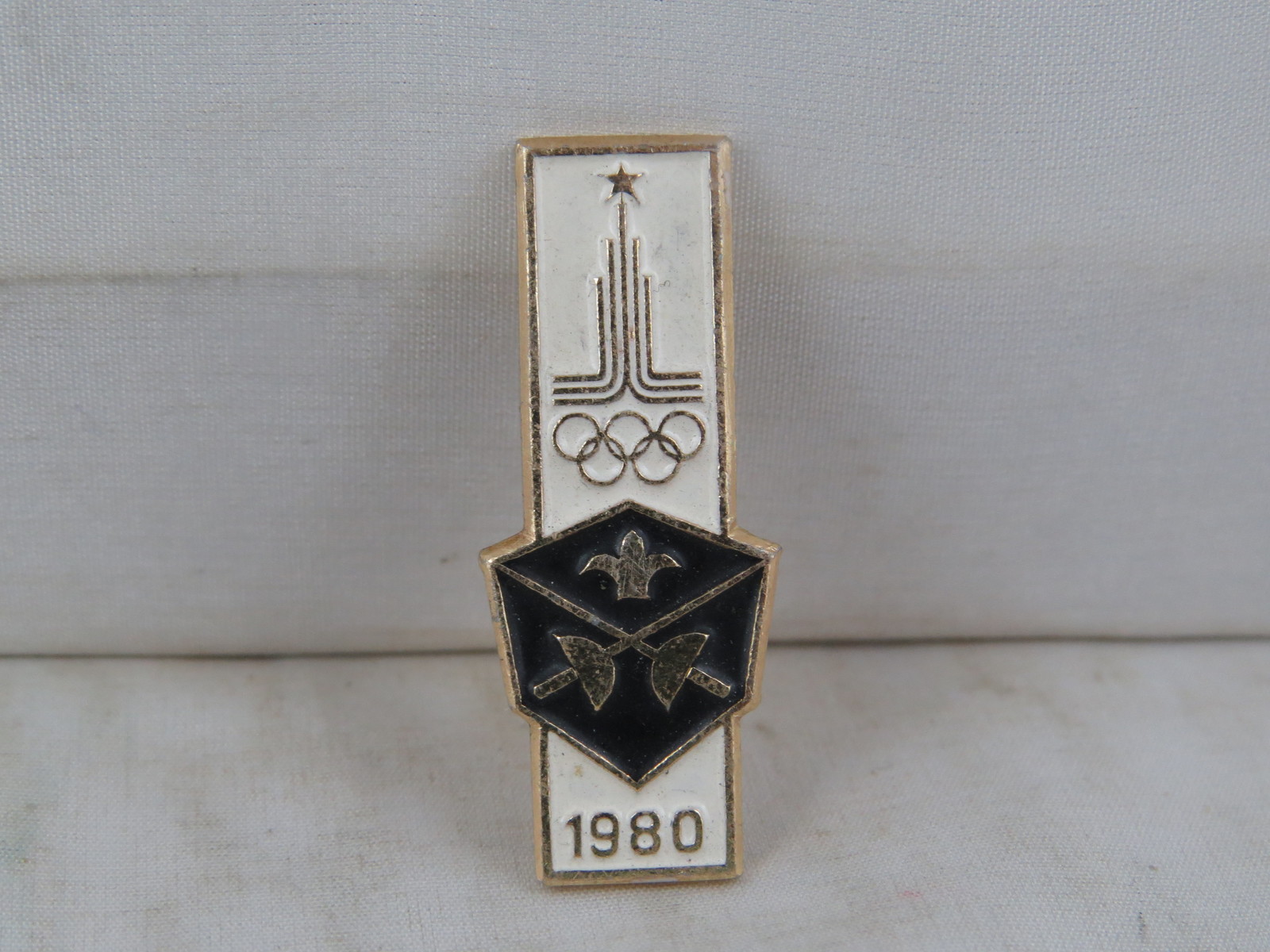 Up for sale is a Summer Olympic Games event pin. This pin is from the 1980 Games which were held in Moscow. The pin is for the fencing event. It features the 1980 Olympic logo with 2 crossed swords in the middle and 1980 underneath. This is a stamped pin. What a great addition to any Olympic pin collection.
