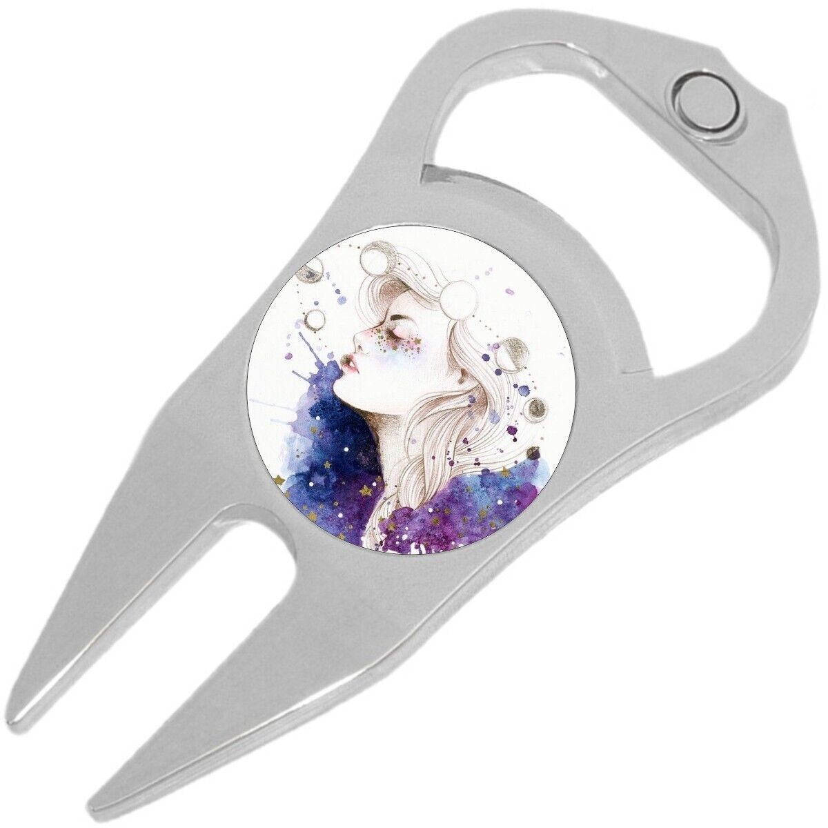 Moon Phases Golf Ball Marker Divot Repair Tool Bottle Opener. This is an all-in one tool for the golf course. It features a ball marker with a high-quality unique image, a putting green repair tool, and a beer bottle opener. Included is a magnet to secure the ball marker to the tool. This item makes a great gift too!