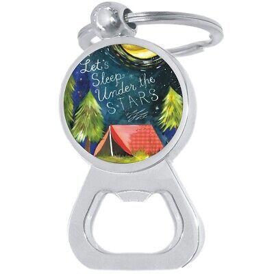 Lets Sleep Under the Stars Bottle Opener Keychain - Metal Beer Bar Tool Key Ring