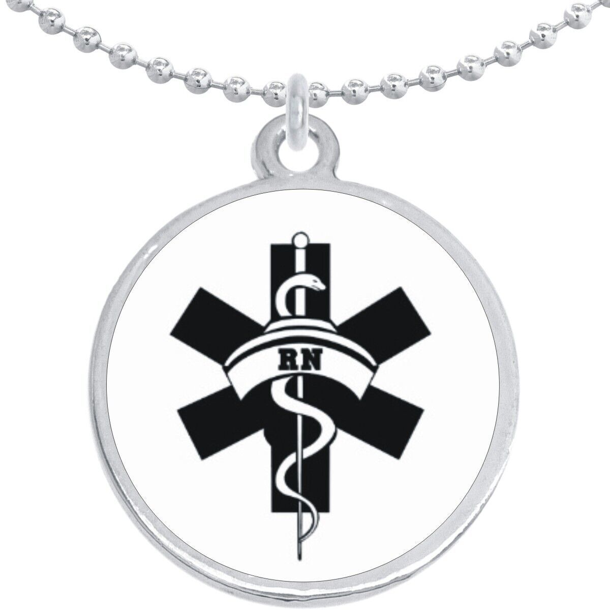 Medical Symbol Caduceus Round Pendant Necklace. High quality necklace pendant customized here in the USA and shipped quickly to you.