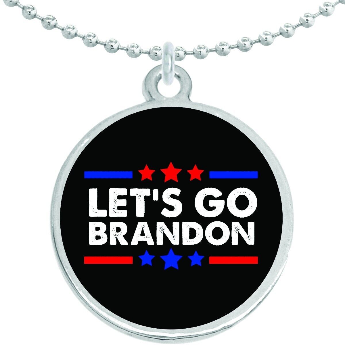 Lets Go Brandon on Black Round Pendant Necklace. High quality necklace pendant customized here in the USA and shipped quickly to you.