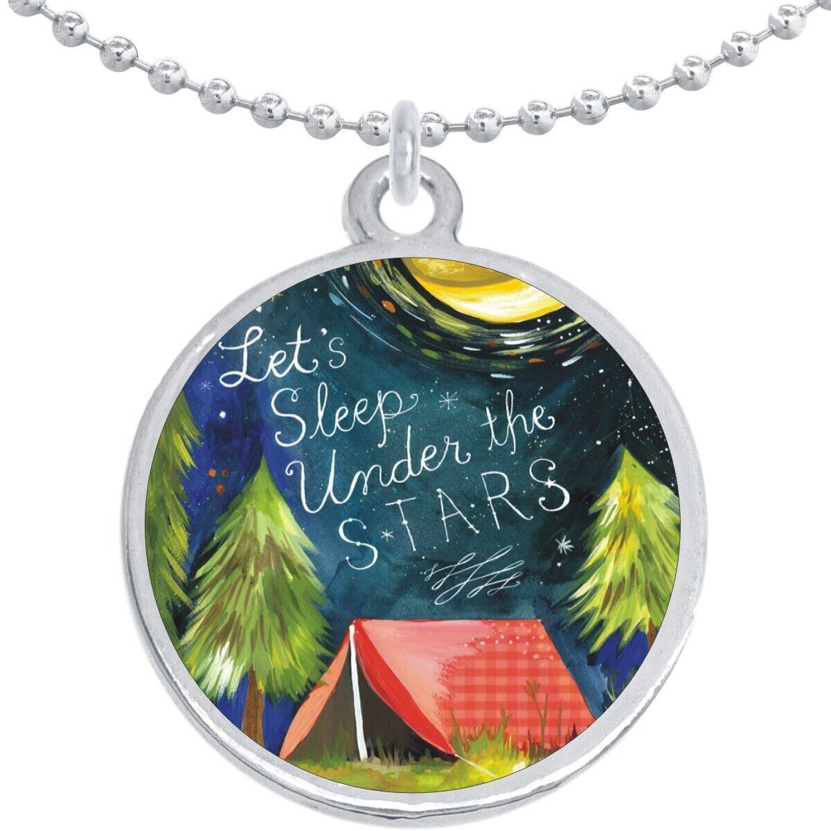 Lets Sleep Under the Stars Round Pendant Necklace. High quality necklace pendant customized here in the USA and shipped quickly to you.