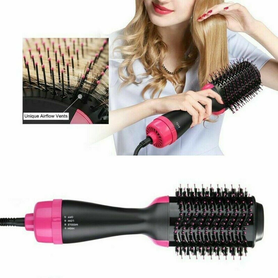 FUNCTIONAL DESIGN TECHNOLOGY : This hot air brush and volumizer has an oval brush design which is most practical for detangling, smoothing, and volumizing your hair.