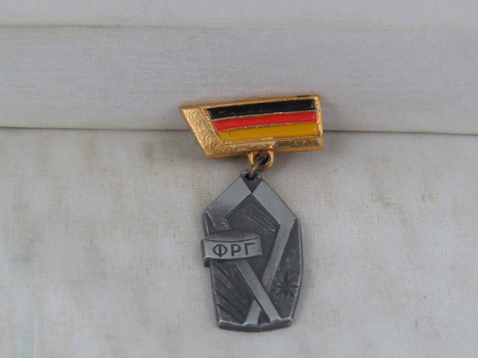 Up for sale is a vintage hockey pin. It is for team West Germany who participated in the 1973 World Hockey Championships and it is a medallion pin. The upper portion of the pin is the West German flag while the lower portion of the pin features a stamped graphic of 2 crossed hockey sticks with a puck on the right side.. What a great addition to any pin collection.