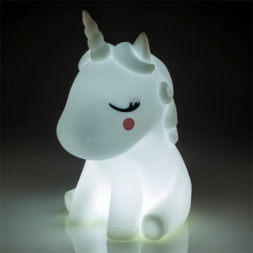This style of lamp is offered in four different characters which means that there is bound to be something here for all styles of decor and all kinds of personalities! There is a friendly puppy, a sweet bunny rabbit, adorable dinosaur (yes, that is a thing) and a fanciful unicorn. All of the lamps are white wh