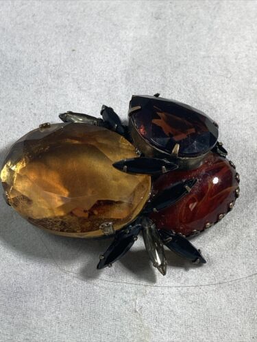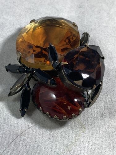 Vtg Signed Hattie Carnegie Glass Cabochon Brooch Pin FOR PARTS OR REPAIR ONLY