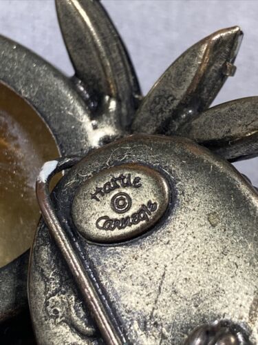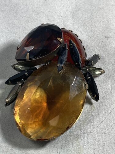The brooch itself is sort of a mystery. We really have no idea what Ms Carnegie was thinking but we speculate it?s a spider eating?dinner. Or it could be a crab.