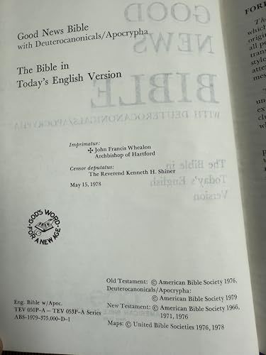Good News Bible with Deuterocanonicals / Apocrypha (Today's English Version) [Ha