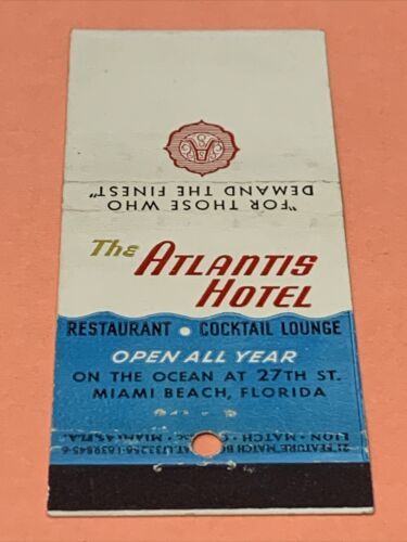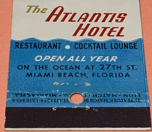 Front Strike Matchbook Cover The Atlantis Hotel Miami Beach, Fla gmg ustruck