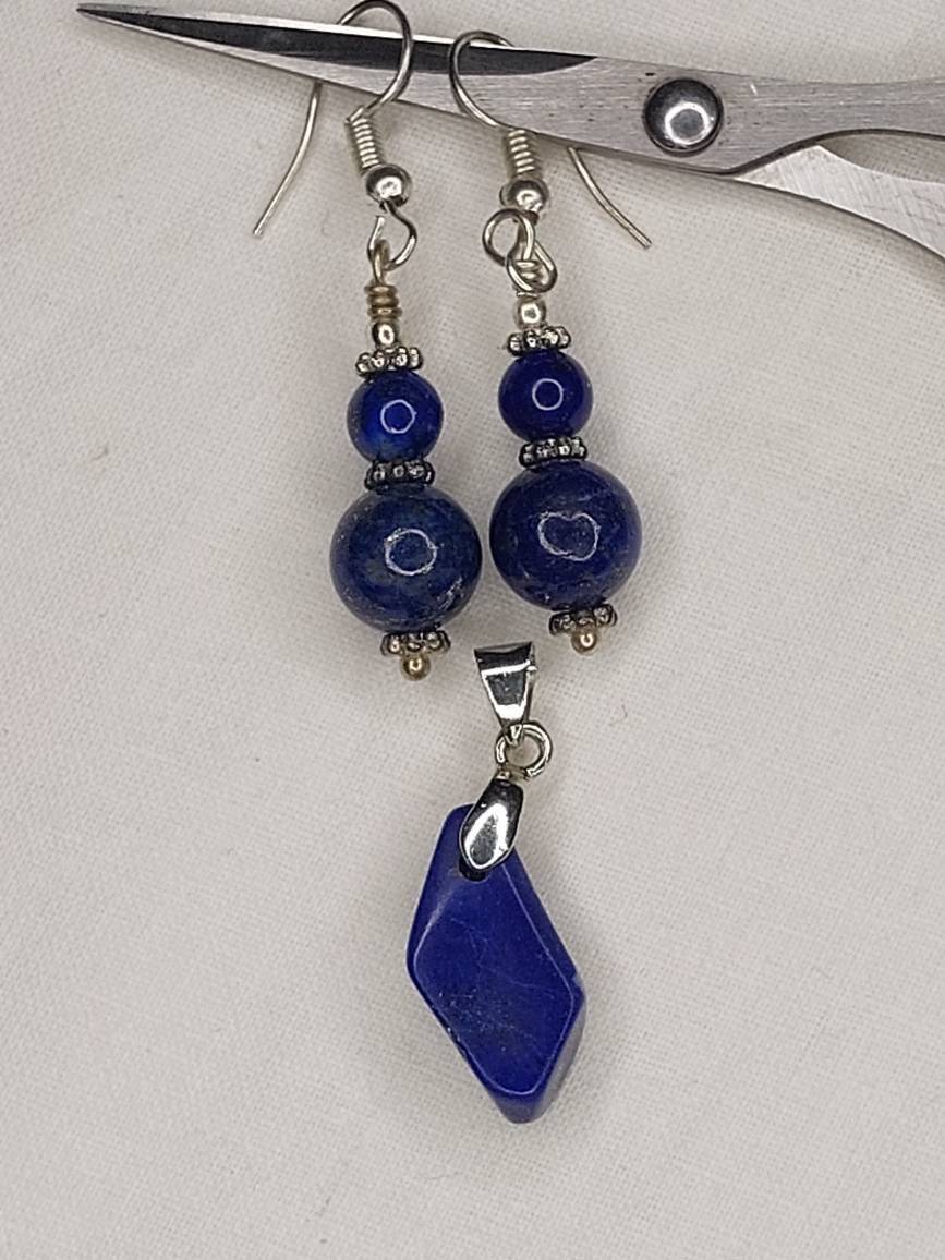 Fabulous Locket and earrings of lapis lazuli with silver 925 Unheated and Untreated