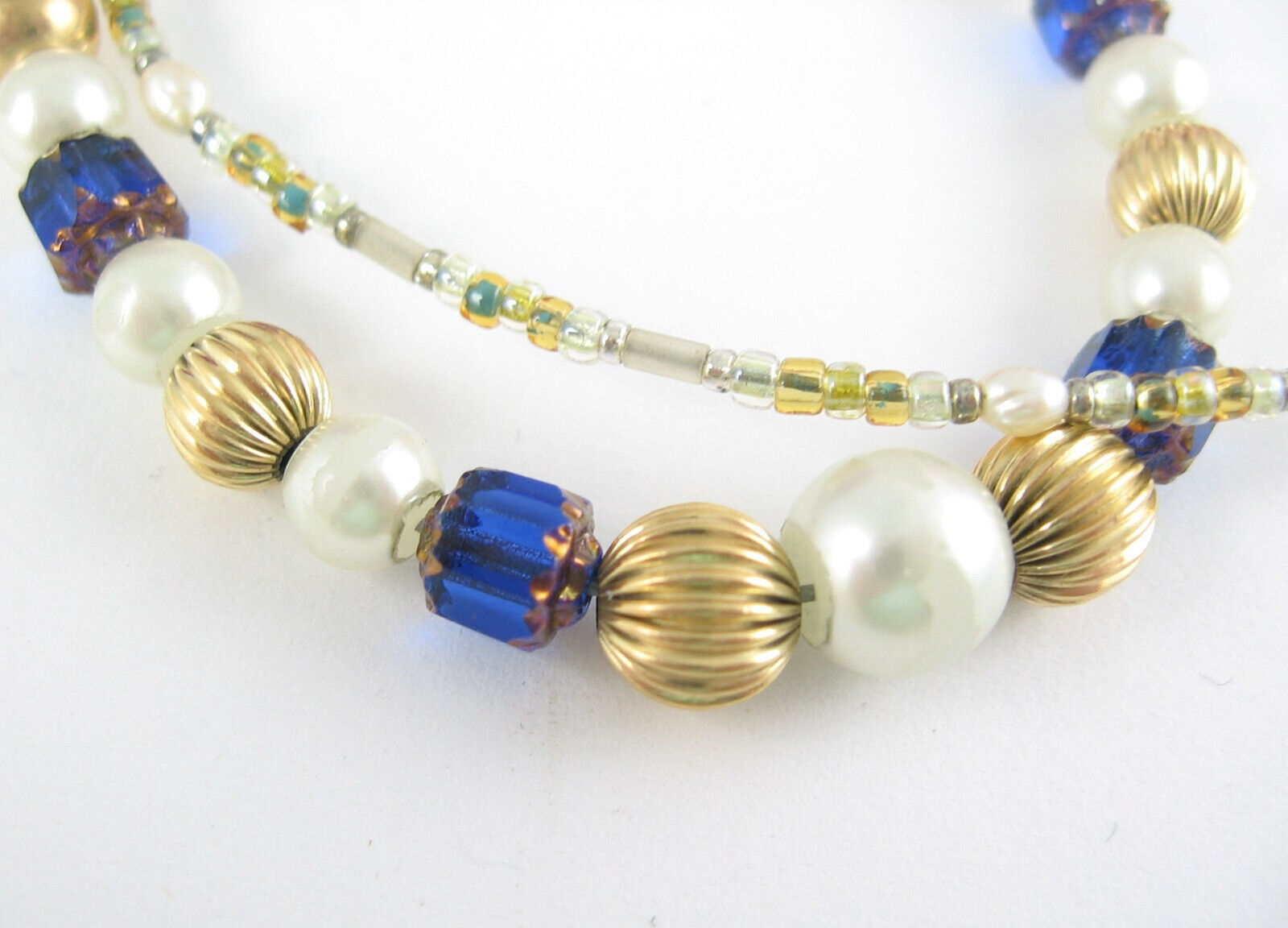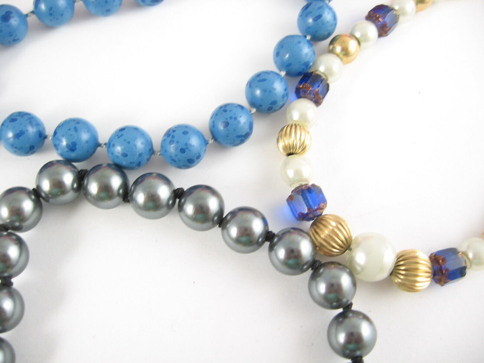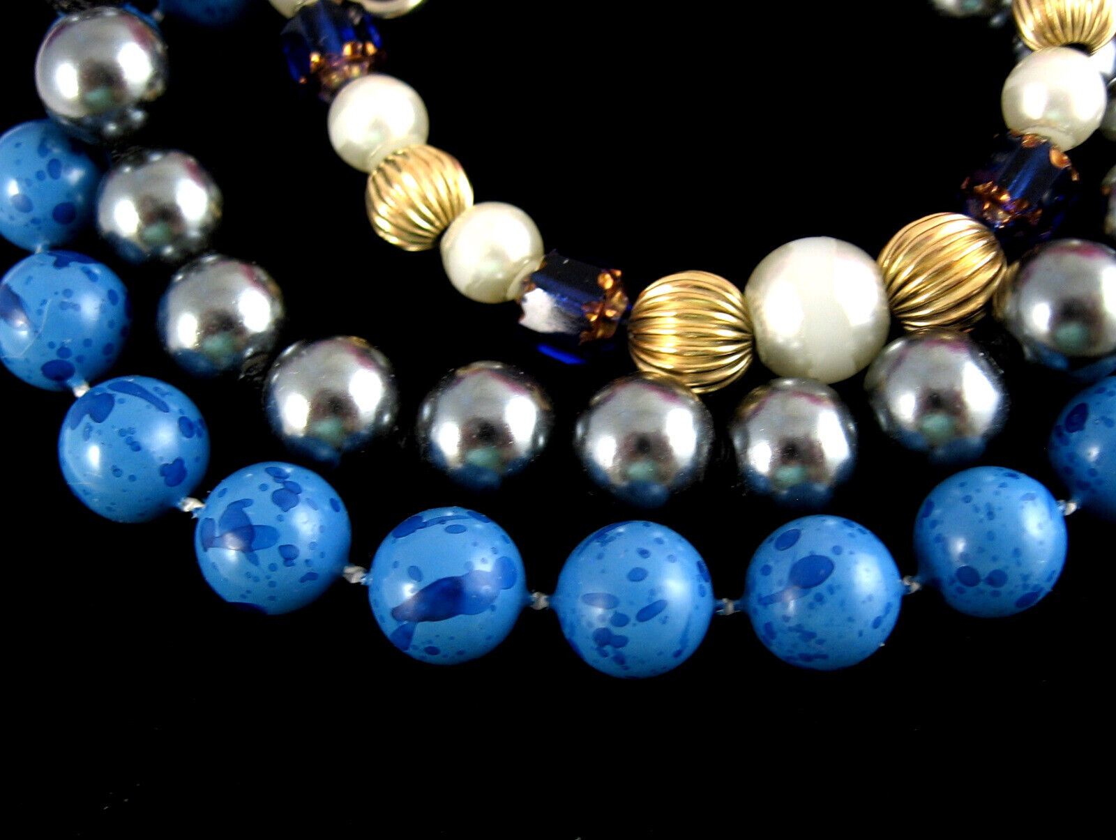 6 Vintage BEADED BRACELETS Clasps Glass Plastic Blue Cobalt Greens Gray Beads
