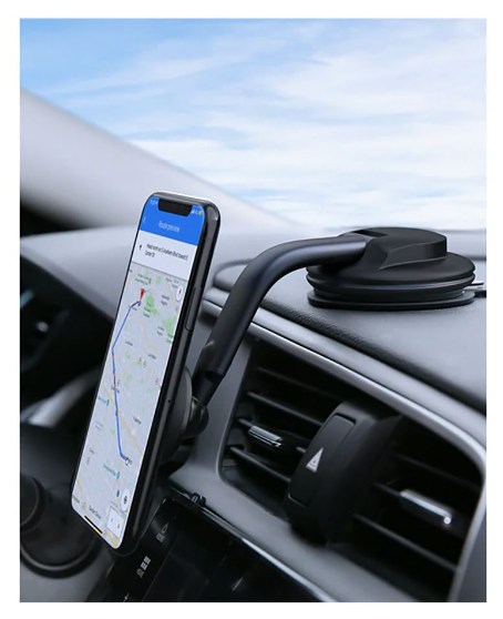 Best Viewing: The base can rotate through 360 degrees, and the adjustable arm and ball joint makes it easy to find the ideal phone viewing angle.Reliable Adhesion: Fixes securely to a flat surface on your dashboard.