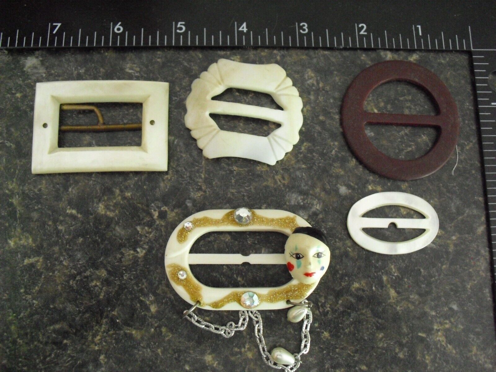 Lot of 5 Vintage Early Plastic Small Ladies Belt Buckles