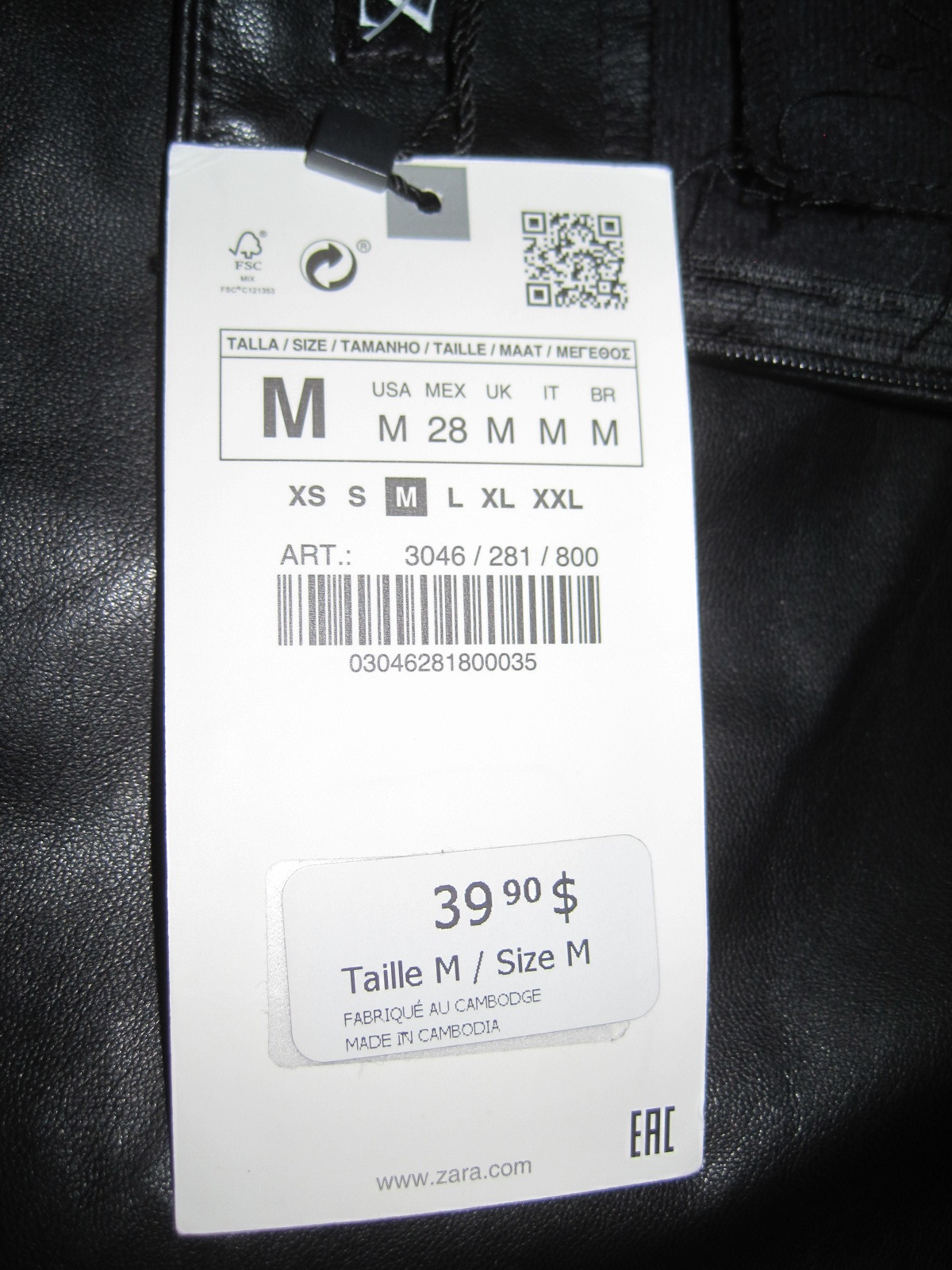 WOMEN'S ZARA Faux Leather Pants Leather Hi-Rise Legging Pants. New comes with tags still attached. Size US Medium