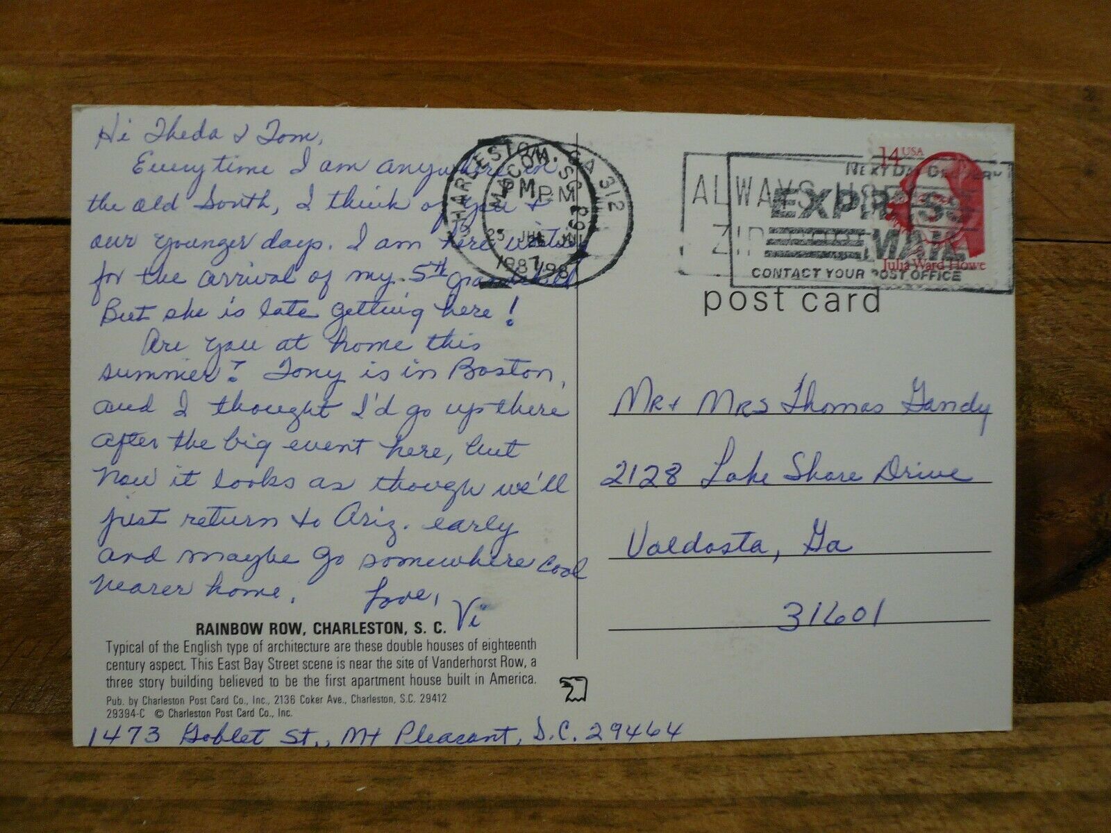 Rainbow Row, Charleston, South Carolina - Vintage 1987 Postcard