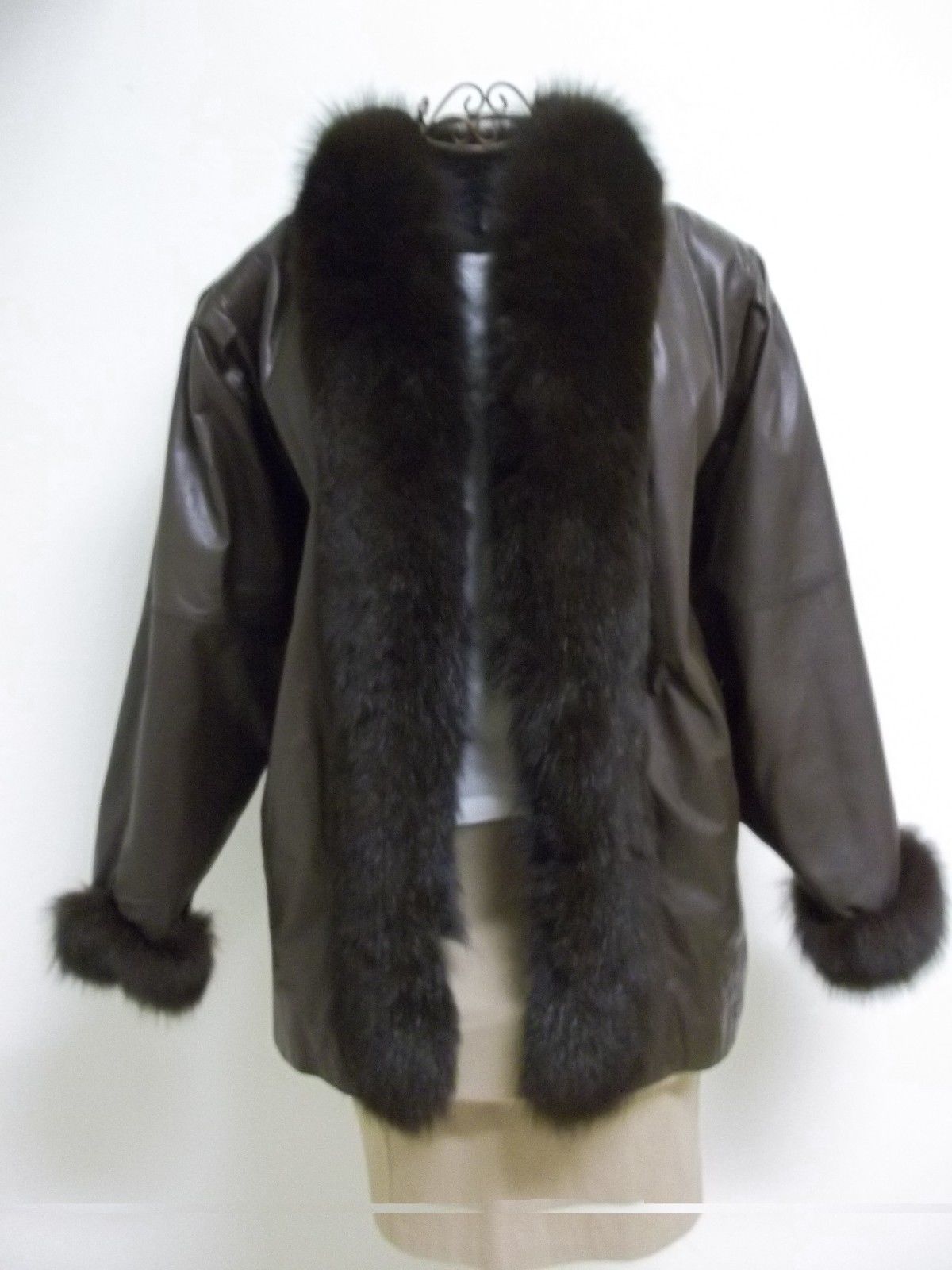 This is a waist length supple chocolate brown leather coat, fur trim appears to be fox, but it's my best guess. The leather is oh soo soft supple, silky soft lining. The fur and leather are in excellent condition, stunning and well maintained, 4 furrier hook and eye closures.