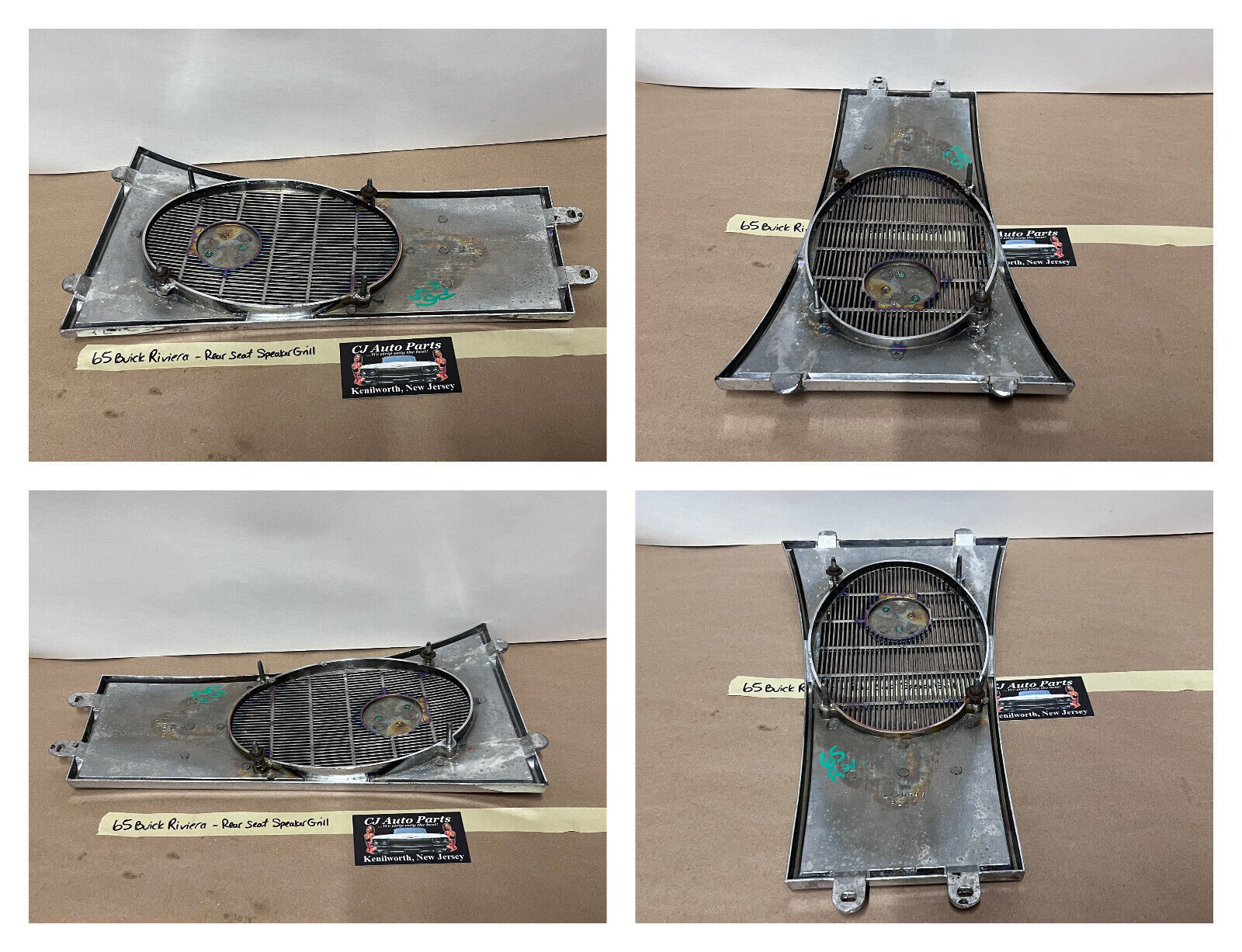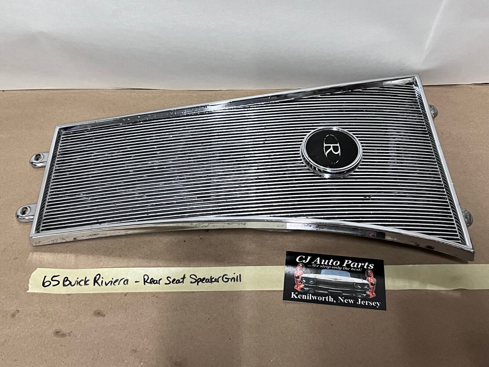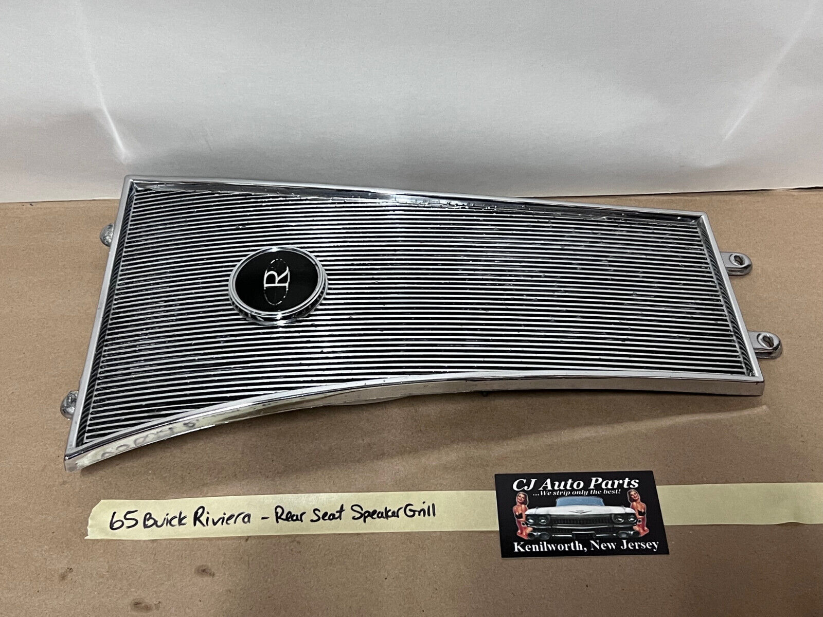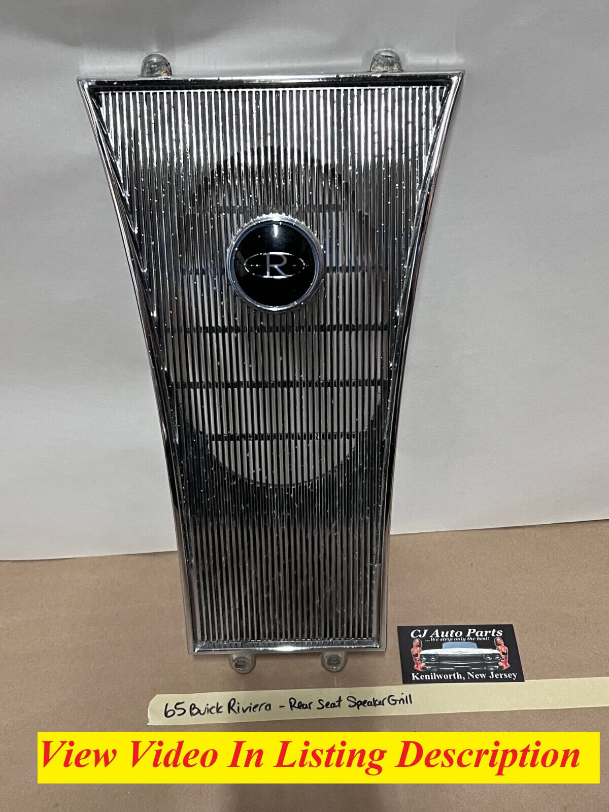65 Buick Riviera REAR BACK SEAT CHROME SPEAKER GRILL COVER TRIM BEZEL W/ EMBLEM