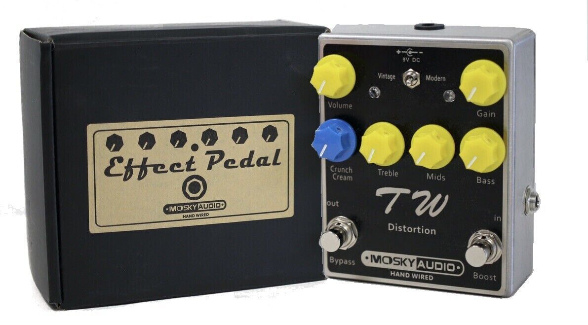 The MOSKY TW: is the tightest, thickest highest gain distortion pedal around, it sounds more like a 5150 amp to us than a distortion pedal,