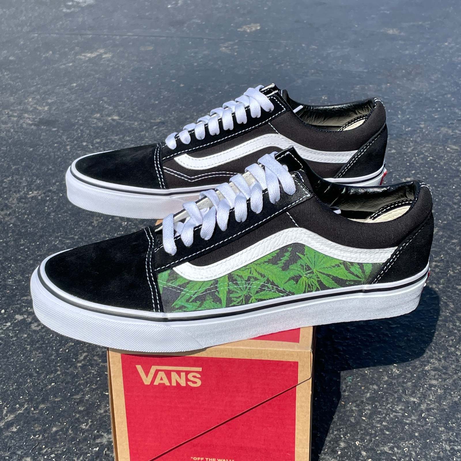 Take your shoe game to a HIGHER level with these custom weed Old Skool Vans.