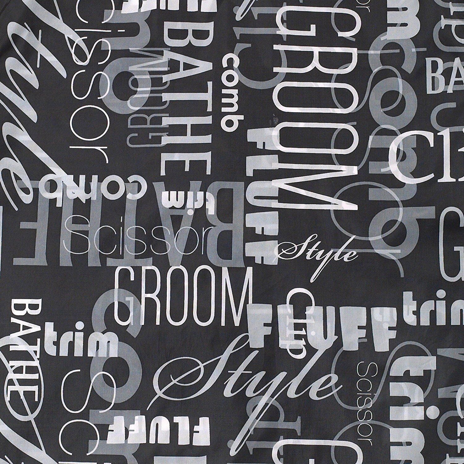 Grooming/Styling themed prints and two front patch pockets.