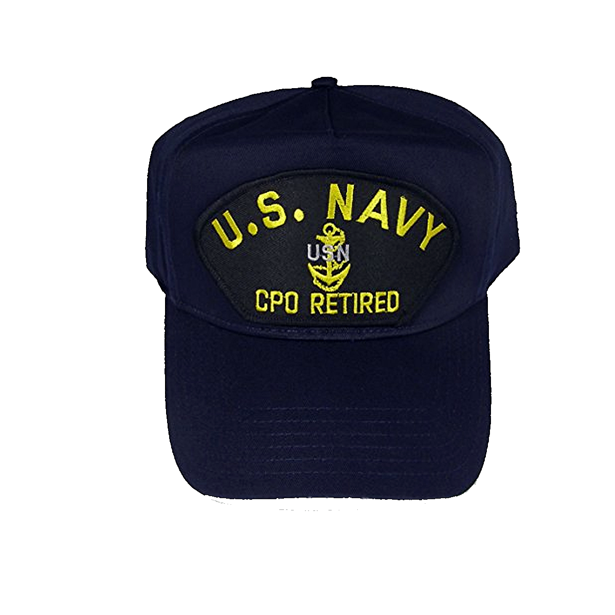 U S Navy CPO Retired with Chief Anchor HAT - Navy Blue - Veteran Owned Business