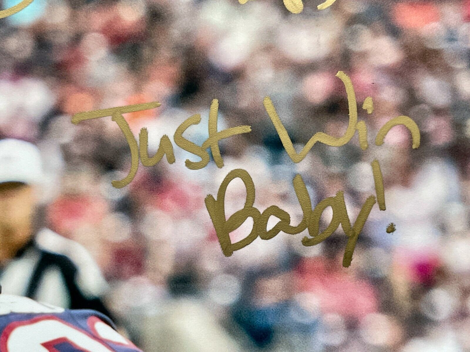 Raiders Darren Waller fans, this item is your calling! Check out this 11" x 14" photo that features the authentic autograph of Darren Waller. In addition to his signature, he hand wrote and inscribed the famous Raiders / Al Davis motto "Just Win Baby"! Wow!! This photo is signed in a gold paint pen and ready to shine in your man cave, office, game room or lady lair!