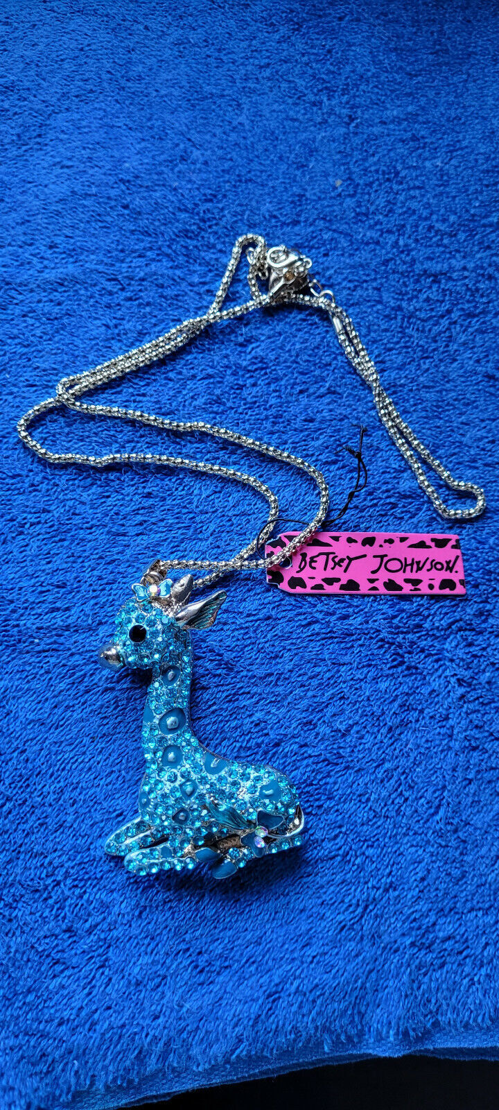 New Betsey Johnson Necklace Baby Giraffe Blueish Rhinestone Collectible Decorate