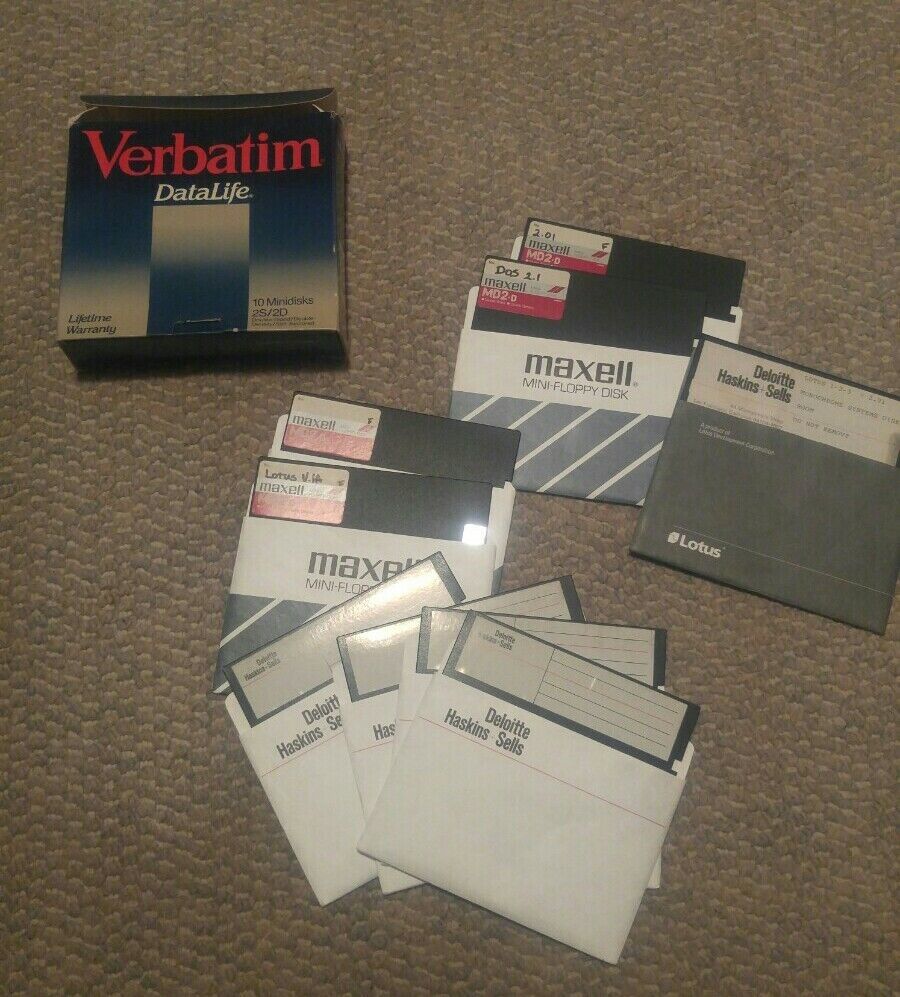Lot of 9 5.25 Floppy Disks DOS Lotus 123 verbatim Box Vintage Computer