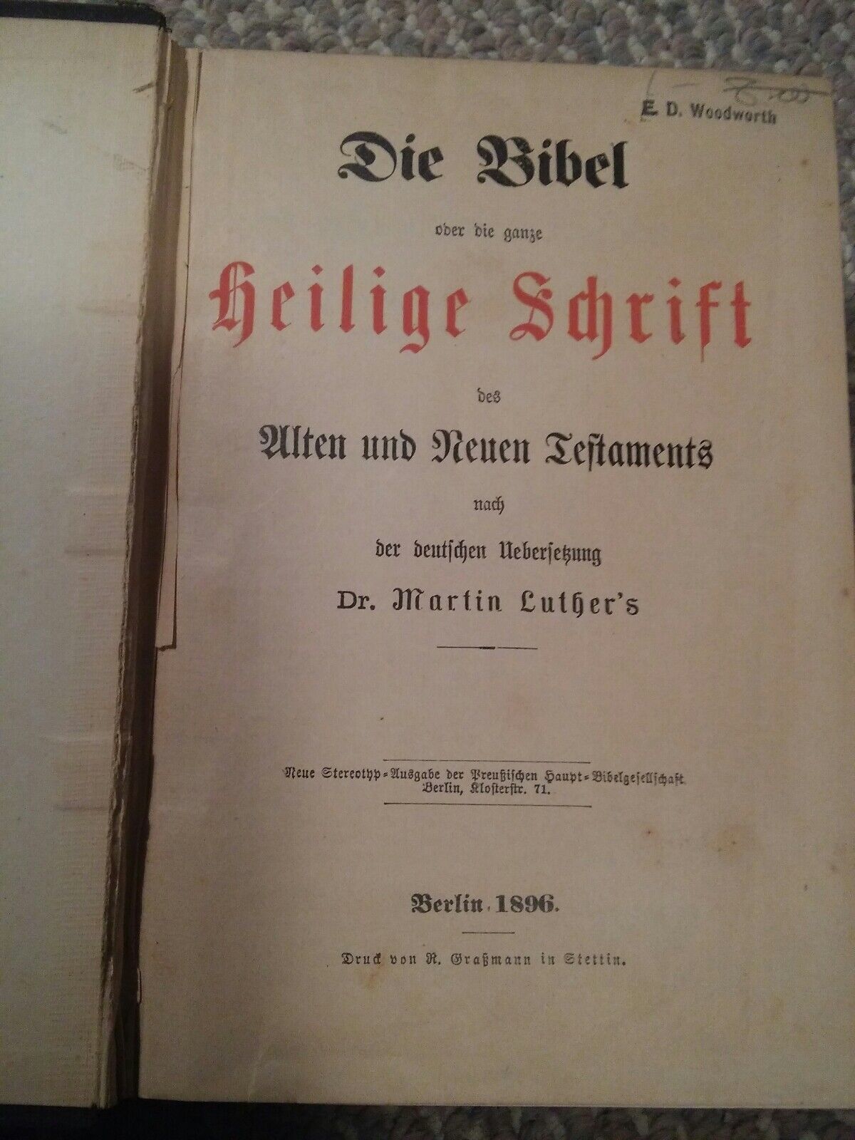 000 Antique 1896 DIE BIBEL German Bible Heilige Schrift