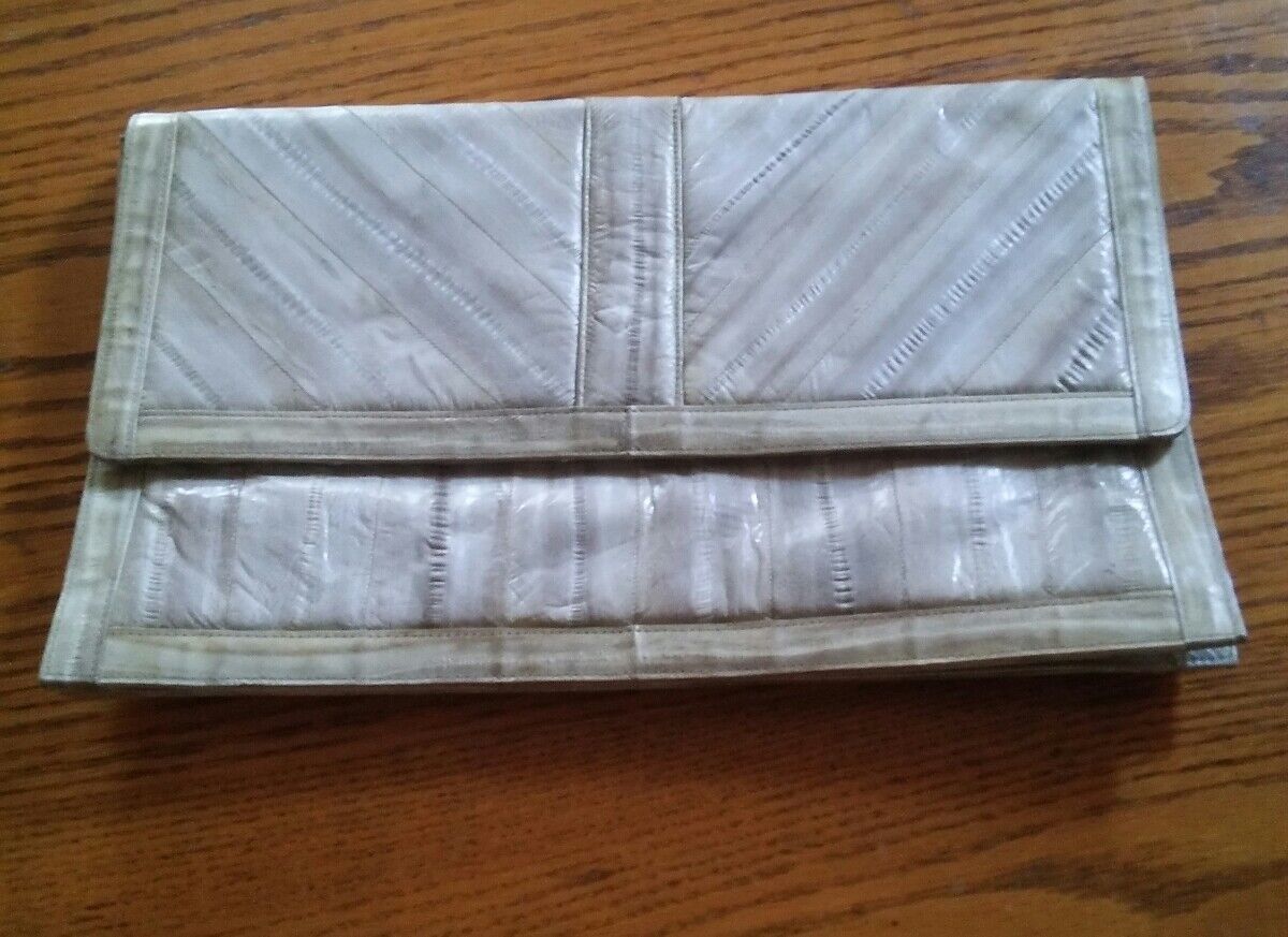 Here for bid is a good used condition Pacific Island Treasures clutch style purse or handbag. I believe this to be eel skin. Main tag says made in Korea. Purse measures 12.5 x 7.5 inches. See photos and ask any questions. I do my best to describe all items. Sometimes I miss things.. Please Please ask questions. Thanks for bidding and good luck. Check out all my items for some great finds. Lots of cool stuff at my sales. I can combine shipping on most.