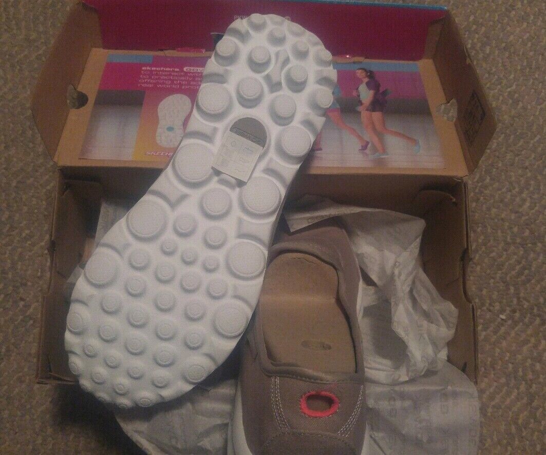Here is a new in the box Skechers shoes. Size 10 Stone color.