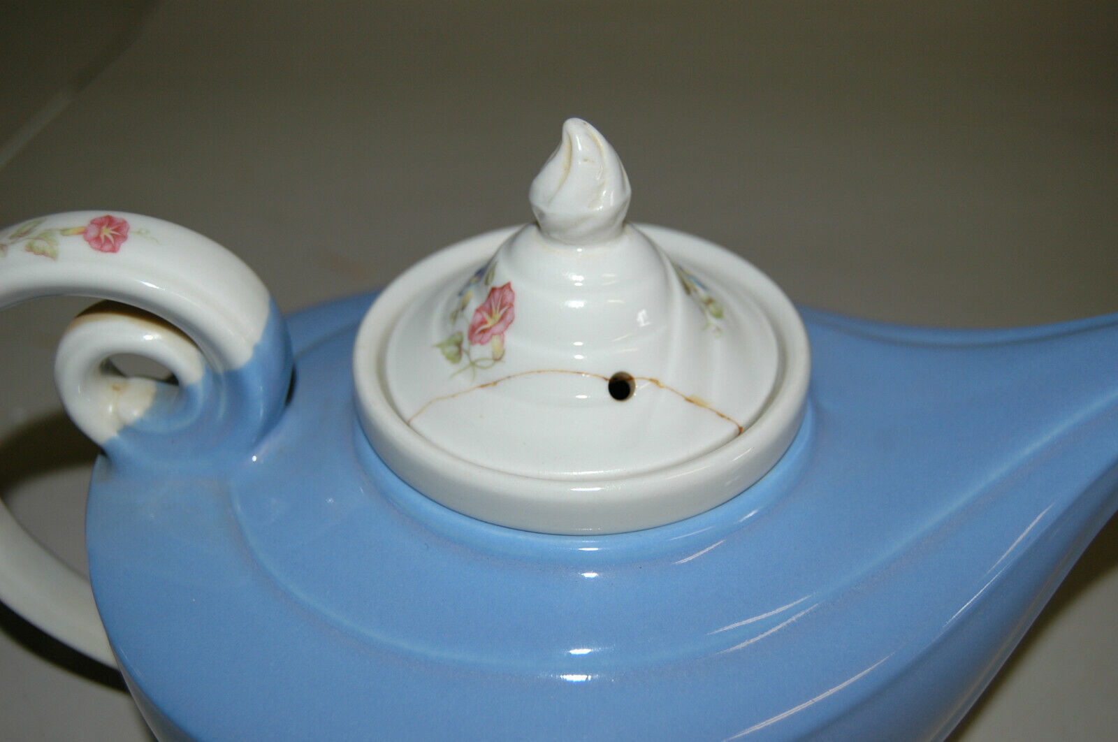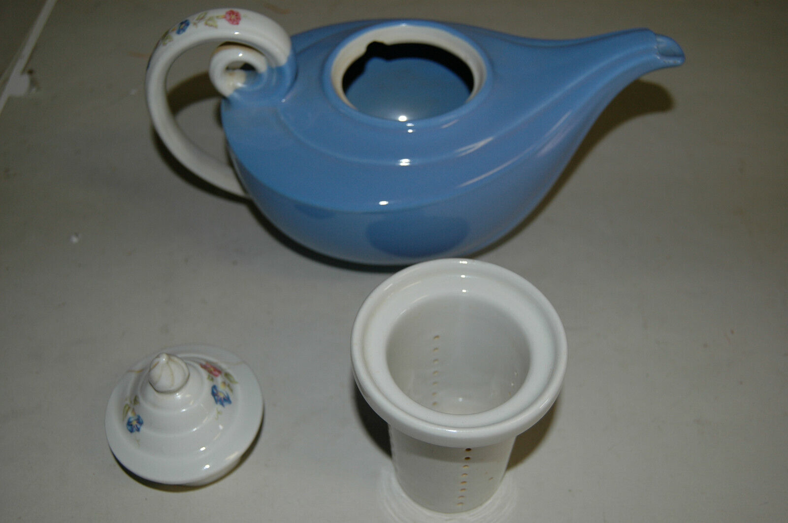 Hall Superior China Morning Glory Blue Aladdin Teapot w/ Strainer