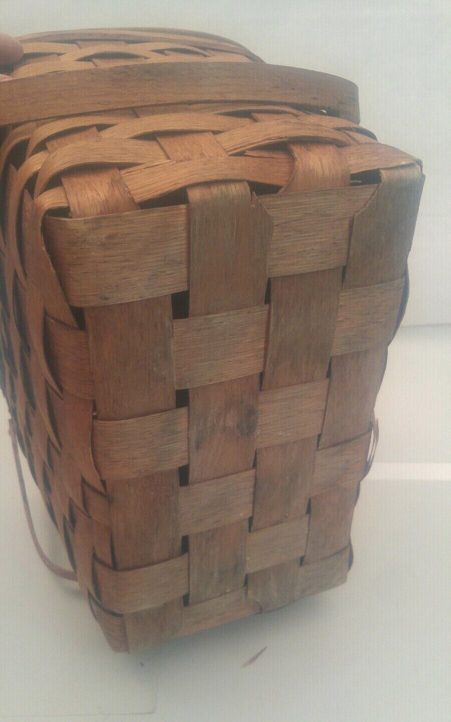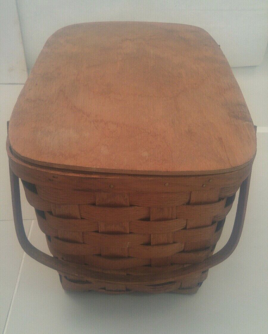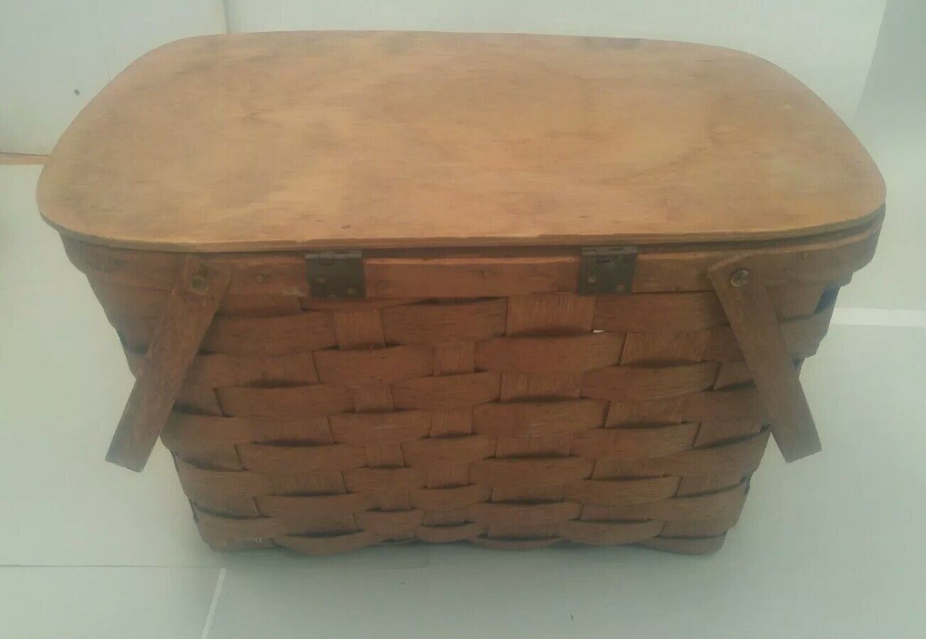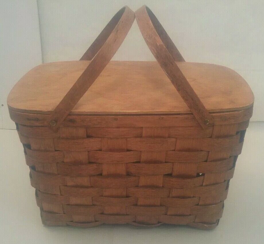 Vintage Basketville Putney Vermont Woven Wood Picnic Basket with 2 Top Handles