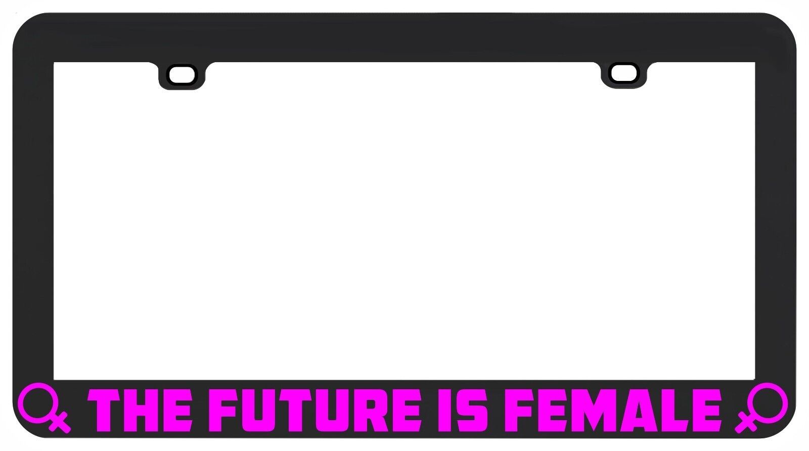 THE FUTURE IS FEMALE PINK FUNNY HUMOR LICENSE PLATE FRAME HOLDER