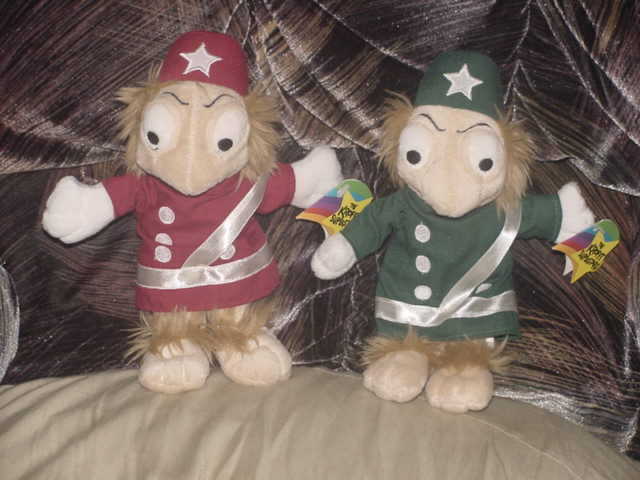Hello everyone, Now at bottom of each of our item page is our word rating plush chart. Please check it out and read full item description before using the buy it now price. Ok here's a rare pair Cling and Clang Bean Bag Plush Toys With Tags, which are in mint use condition From "H.R.Pufnstuf". Each measures around 8 1/2 inches long. Tush body and hang tags reads, Sid Marty Krofft Pictures, 1999. Please see picture. Winner bidder pays by Zone and Zip Code for priority mail shipping (up to 2 lbs) with handling of (1.50 h-fee), plus required (.85) delivery confirmation US only. Sorry we do Not Ship to Canada or Internationally. Sorry but Immediate Paypal payment is required when using Buy It Now, E-Checks from Paypal are held 3-5 business days until it clears before item is ship. Since we are limited on our picture space, pic will be deleted after the end of auction, so if you would like to see pic after the auction, please print out picture before the auction ends. We due not do returns or refunds, so Please read full item description, all sales are final and are sold as worded in item description. Please take a moment and check out our other great Disney plush and character toys which are listed sale this week. New Rating Plush Chart. NEW: Comes from a factory or department store and has not played with. MINT Or LIKE-NEW: Looks new but might still been played with but shows no wear on the Plush itself but still might have a flaw (like a odor, etc., and might not been wash even though we strive very hard to make all our plush smell free but can not guaranteed them) EX. COND: Some minor play wear and might have some minor flaws which would be in the item description. VERY GOOD: Has been played with and has flaws. GOOD: Has been played with a lot. POOR: We try not to sell any real poor condition toys. Thank-You and Have A Fantastic Week