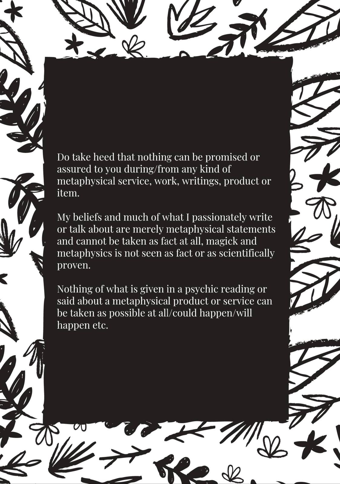 This reading covers any topic of your choice: work, career, love, relationships, children, legal issues, finances, paranormal matters, or general future insights.