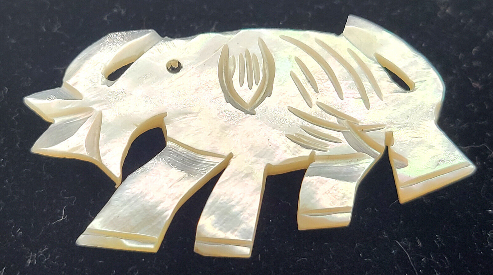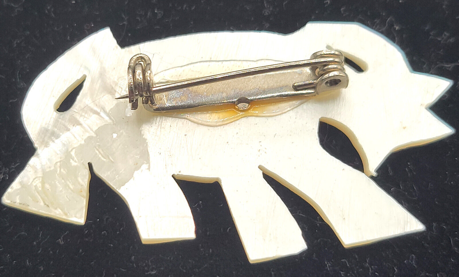Lucky Trunk Up Elephant Pin Brooch White Carved Plastic Faux Shell 2"