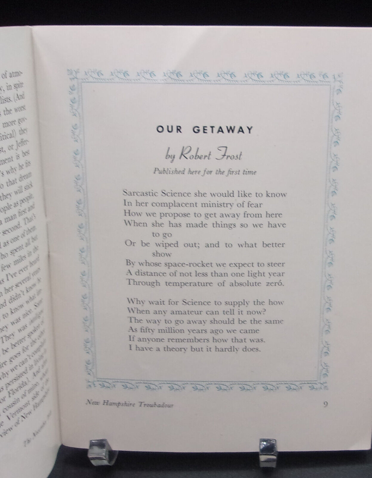 ROBERT FROST ISSUE The New Hampshire TROUBADOUR November 1946 "Our Getaway" Poem