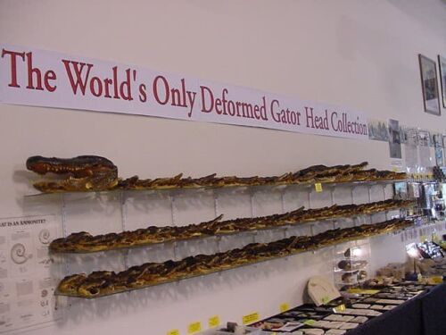 Glenn began to notice these deformed heads as part of his orders for gator heads from Louisiana, and began to request them to set aside the deformed heads to send to him, which they did! That is how we acquired so many, realizing how large a problem the pollution really was.